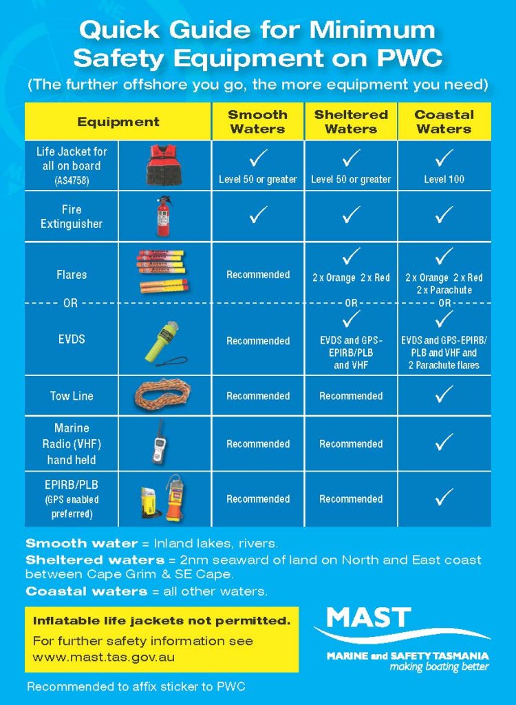 | Equipment | PWC within Sheltered Waters | PWC within all other waters |